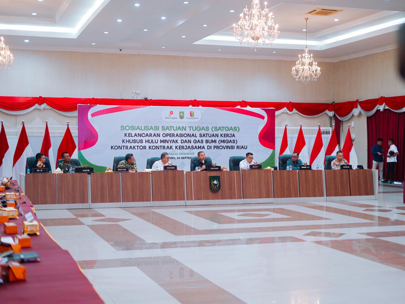 Pekanbaru, Okegas.co.id – Pemerintah Provinsi Riau bersama SKK Migas Perwakilan Sumatera Bagian Utara (Sumbagut) dan Kontraktor Kontrak Kerja Sama (KKKS) Hulu Migas menggelar Sosialisasi Satgas Kelancaran Operasional Hulu Migas di Gedung Daerah Balai Serindit, Selasa (30/9/2025).