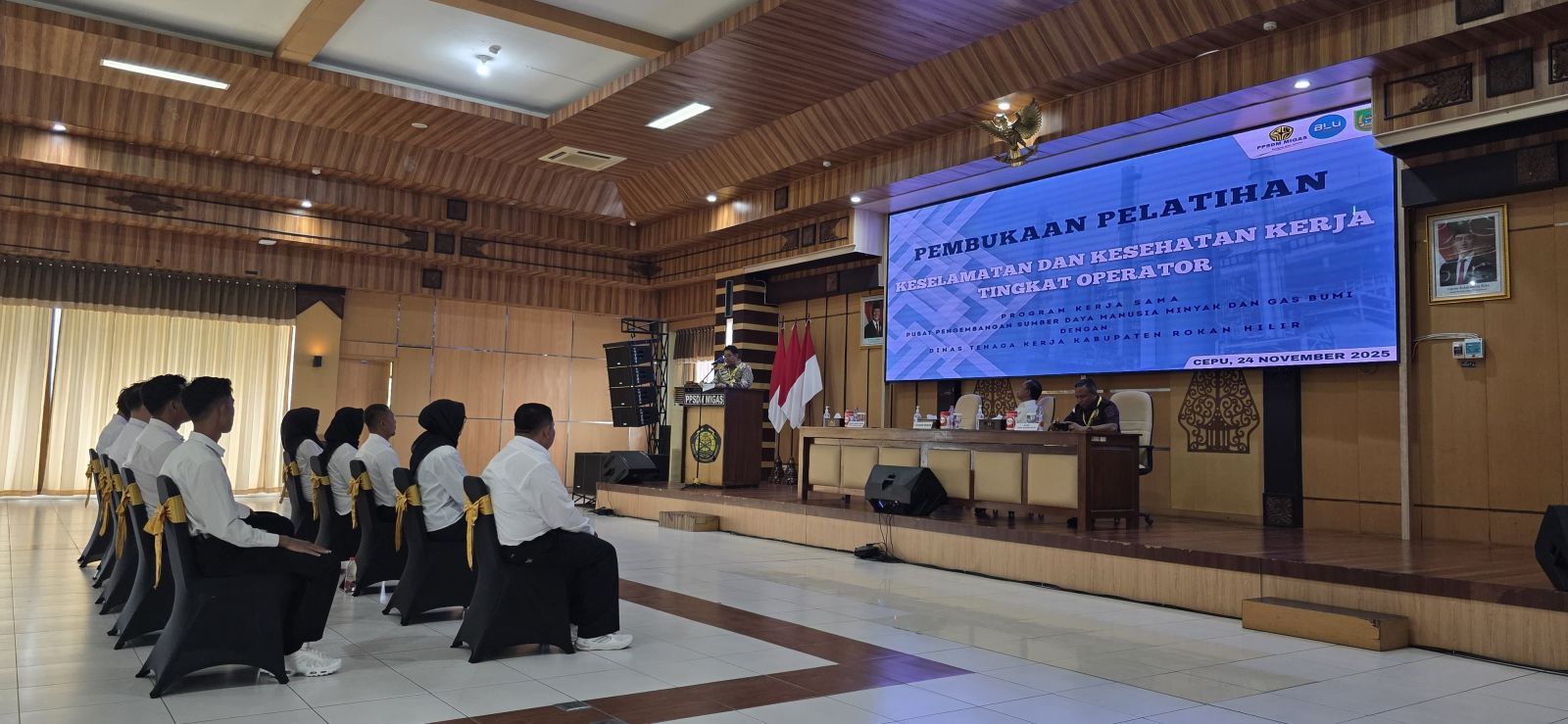 "Atas nama Bapak H. Bistamam, Bupati Rokan Hilir, saya dengan penuh hormat membuka secara resmi Pelatihan K3 Tingkat Operator ini. Kegiatan ini merupakan buah nyata dari sinergi strategis antara PPSDM Migas dengan Pemerintah Kabupaten Rokan Hilir melalui Dinas Tenaga Kerja. Ini bukan sekadar pelatihan, melainkan wujud konkrit perhatian dan kepedulian kami untuk meningkatkan kompetensi, keselamatan, dan kesehatan para pekerja, khususnya tingkat operator, sebagai aset daerah yang sangat berharga."