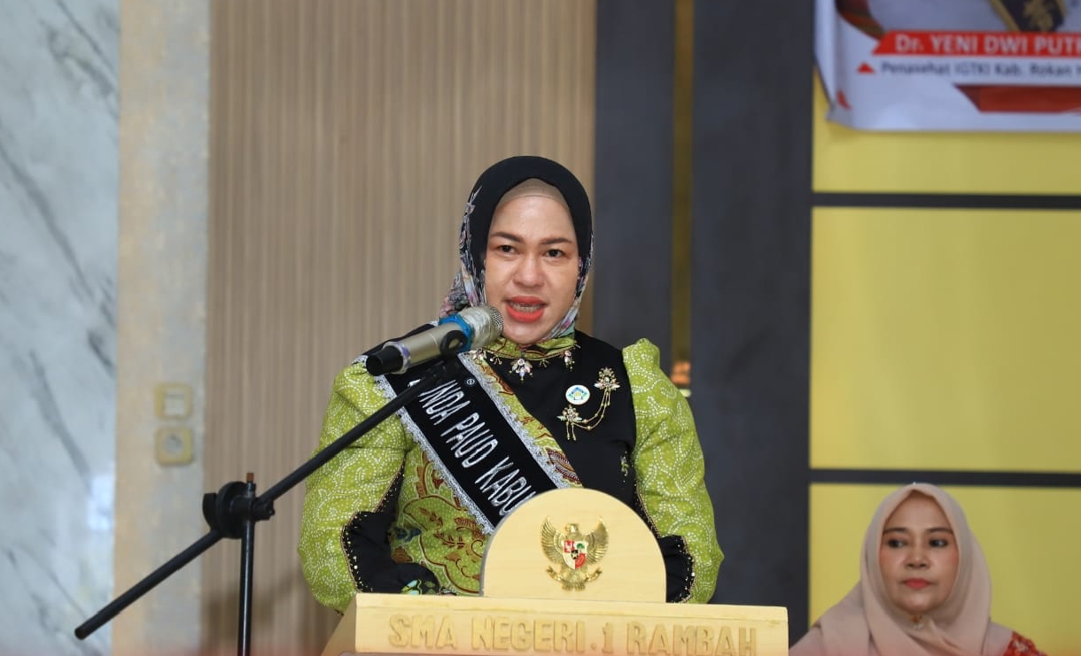 Pelatihan Peningkatan Kapasitas Pendidik TRokan Hulu  - Dalam Rangka memperingati hari guru nasional pemerintah Kabupaten Rokan Hulu melalui IGTKI dan Rumah Karakter Indonesia melaksanakan kegiatan pelatihan peningkatan kapasitas pendidik bagi pendidik Taman Kanak kanak Se Kabupaten Rokan Hulu  yang di buka secara resmi oleh Bunda Paud Rokan hulu dr. Yeni Dwi Putri, di Aula SMA N 1 Rambah, Jumat (28/11/2025).