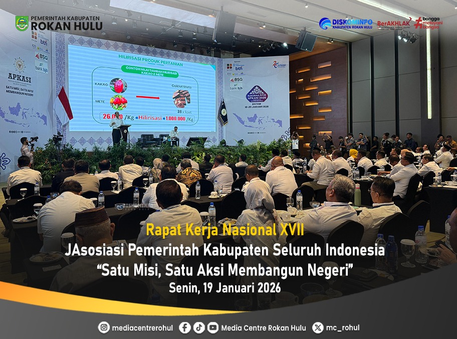 ?BATAM – Bupati Rokan Hulu (Rohul), Anton, ST, MM, menghadiri langsung Rapat Kerja Nasional (Rakernas) Asosiasi Pemerintah Kabupaten Seluruh Indonesia (APKASI) ke-XVII tahun 2026. Acara yang mempertemukan para kepala daerah se-Indonesia ini digelar di Grand Lotus Ballroom Hotel Aston Batam, Kepulauan Riau, Senin (19/1/2026).