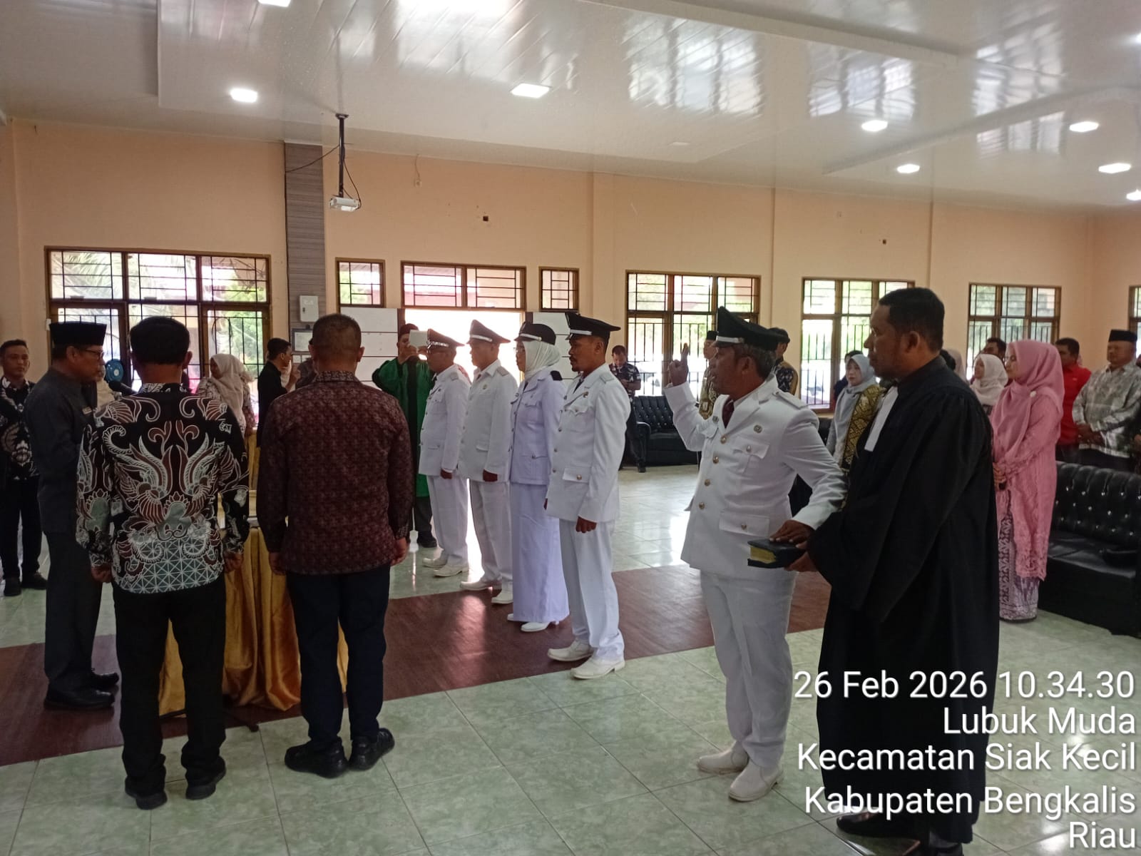 Siak Kecil, OKEGAS - Sebanyak lima Penjabat (Pj) Kepala Desa di Kecamatan Siak Kecil resmi dilantik dan diambil sumpahnya oleh Camat Syahnan Ady Kusuma, Kamis (26/2/2026),